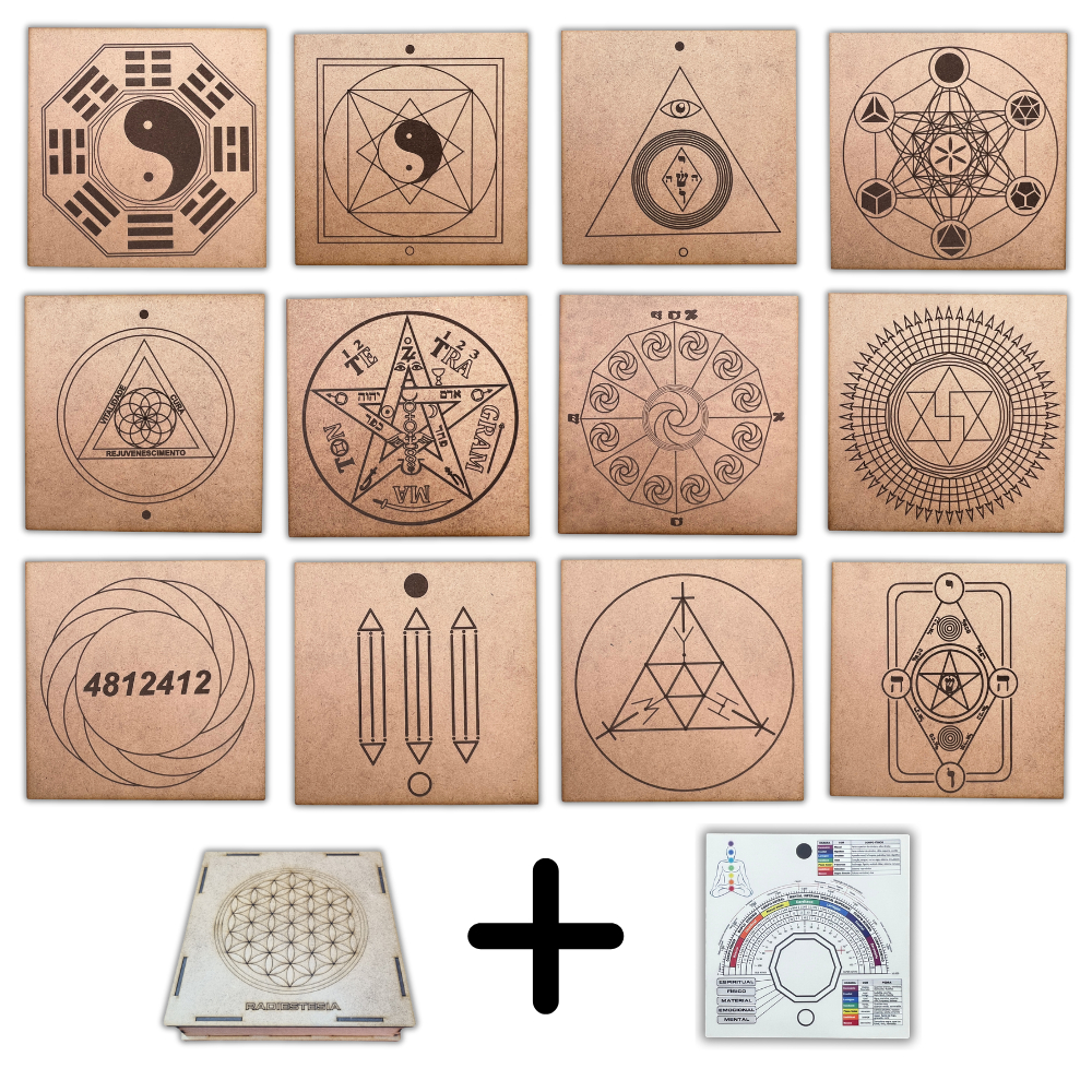 1. 12 placas utilizadas na radiestesia em mdf 20x20cm (grupo 3)