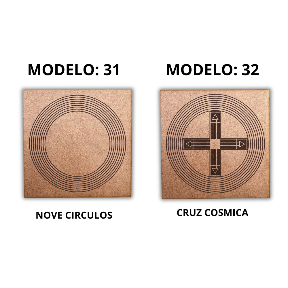2 placas em mdf de 3mm 20x20cm (nove circulos e cruz cosmica)