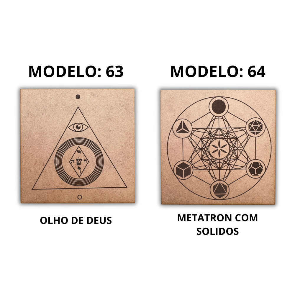 Descubra o Poder da Radiestesia com Nosso Kit 2 placas em mdf de 3mm 20x20cm (olho de deus e metatron com solidos)