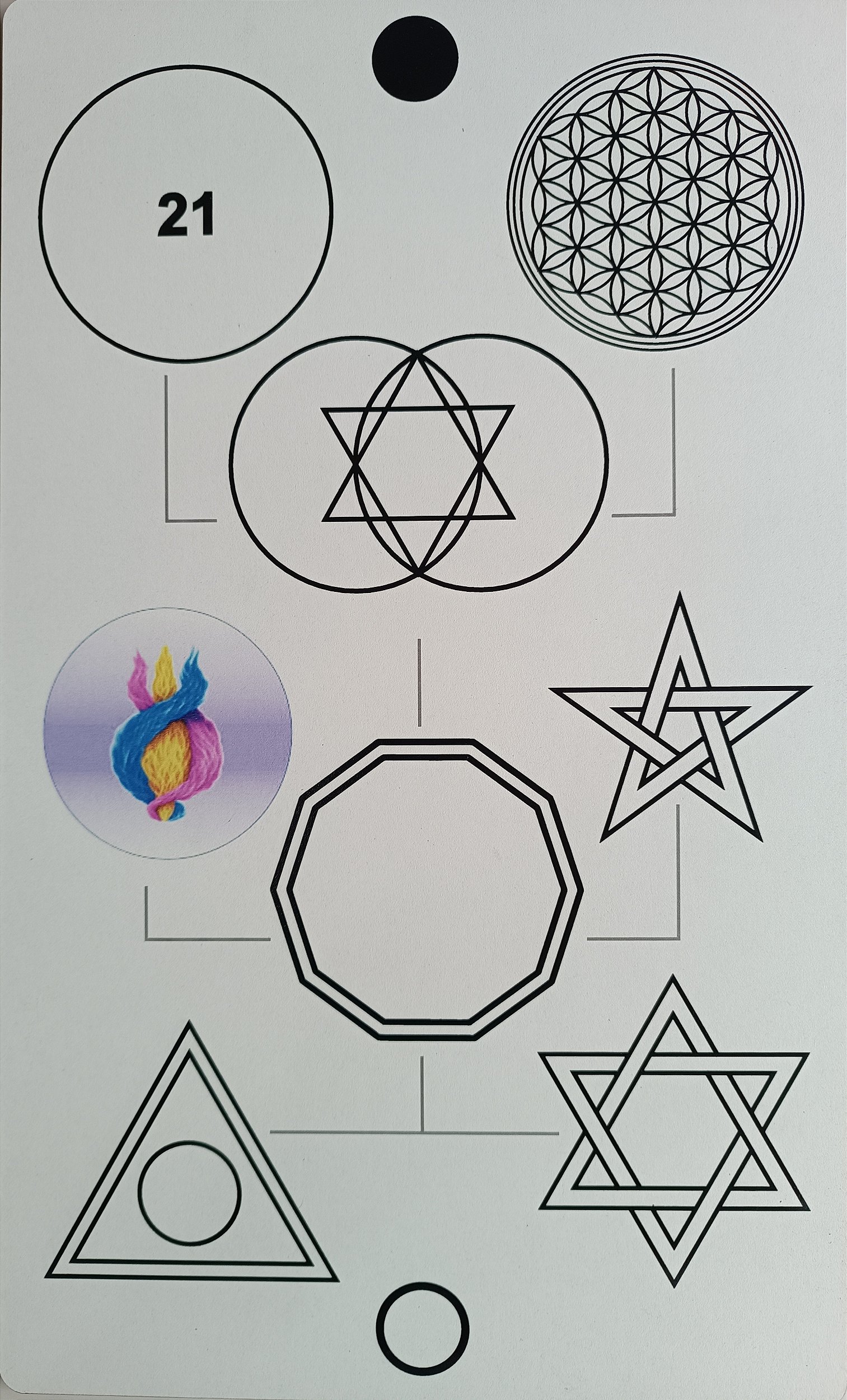 Gráficos inclusos: Decágono Duplo, Código 21, Flor da Vida, Vesica Piscis, Chama Trina, Pentagrama, Triângulo, Selo de Salomão.